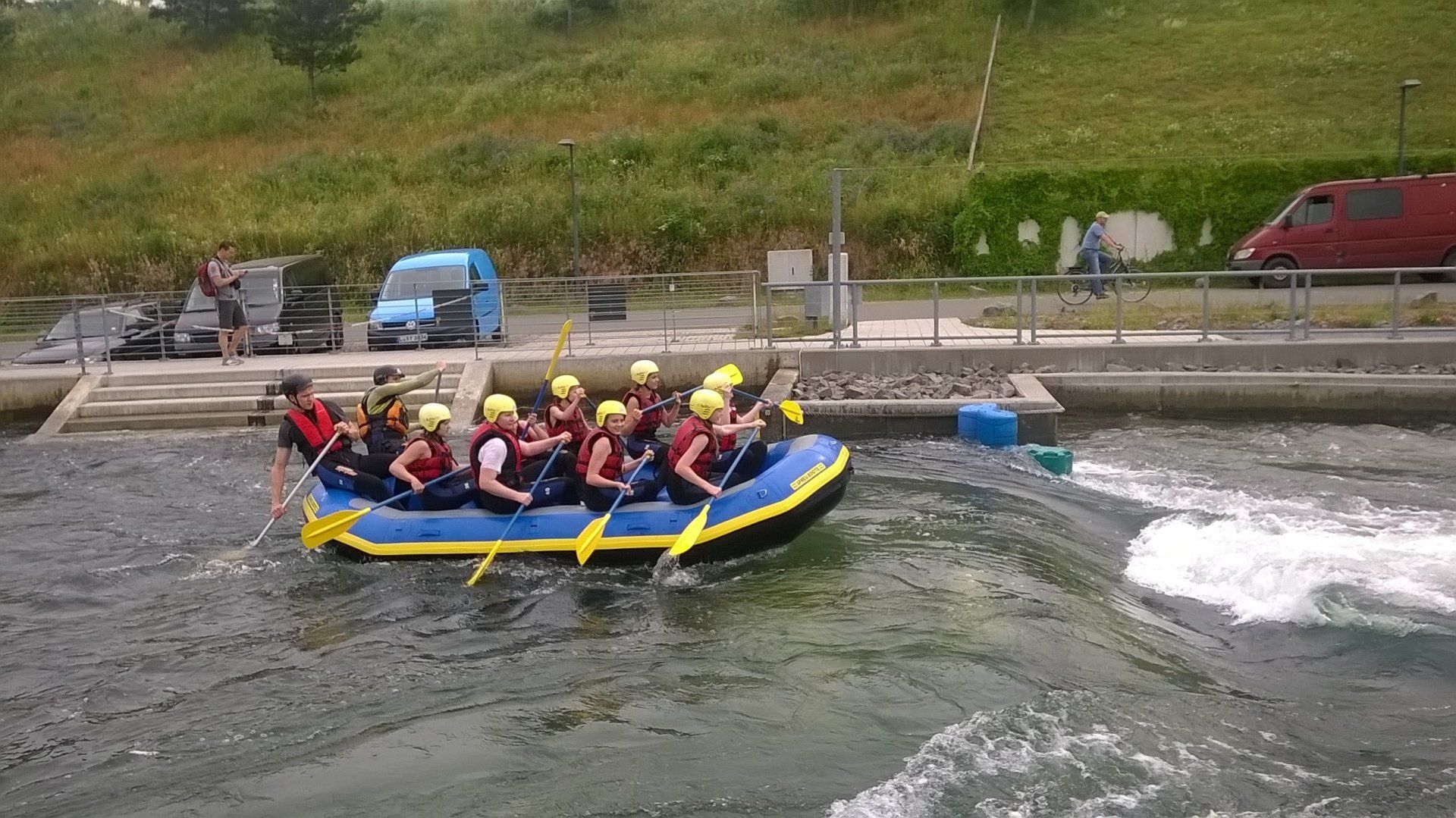Im anschließenden Bootcamp war für den Konzertchor eine Fahrt im Wildwasser und auf dem Markkleeberger See ein besonderes Erlebnis.